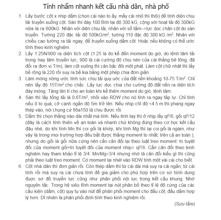 Tính nhẩm nhanh kết cấu nhà dân, nhà phố