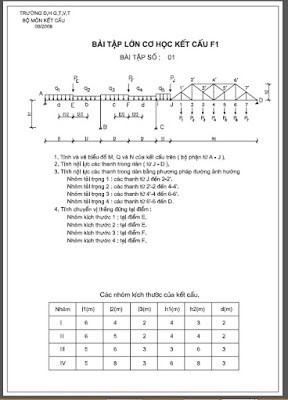 Bài Tập Lớn Cơ Học Kết Cấu F1 – Đại Học GTVT