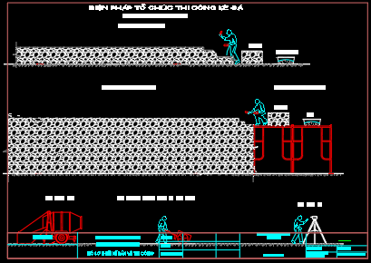 - Thi công theo đợt: Xây đến đâu lấp đầy vữa đến đó, kiểm tra độ ngang bằng và thẳng đứng.