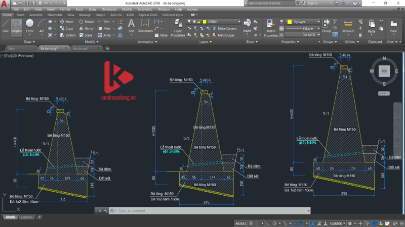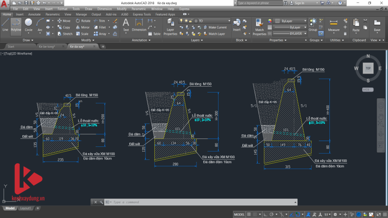 - Bản vẽ chi tiết kè đá xây + BTCT ( File AutoCad )