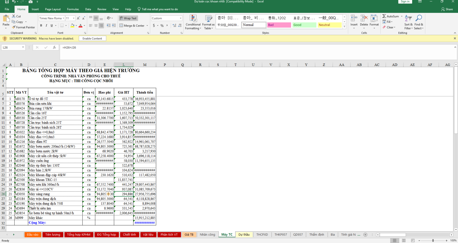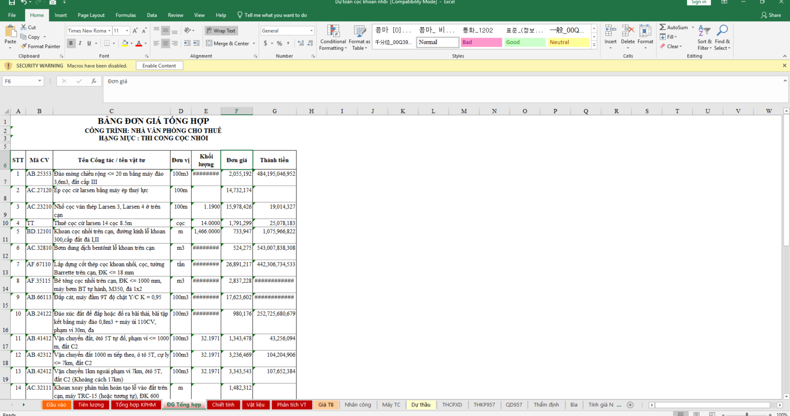 Gửi anh em tham khảo Dự toán cọc khoan nhồi