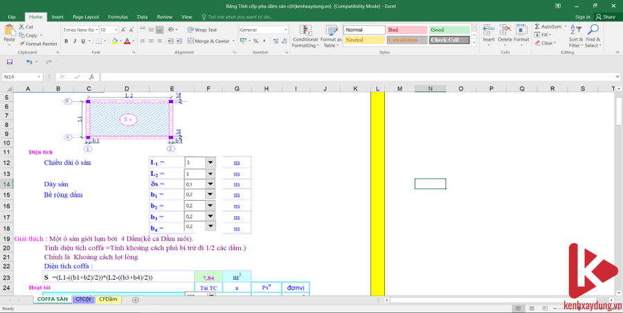 [Excel] Bảng tính coppha dầm sàn cột