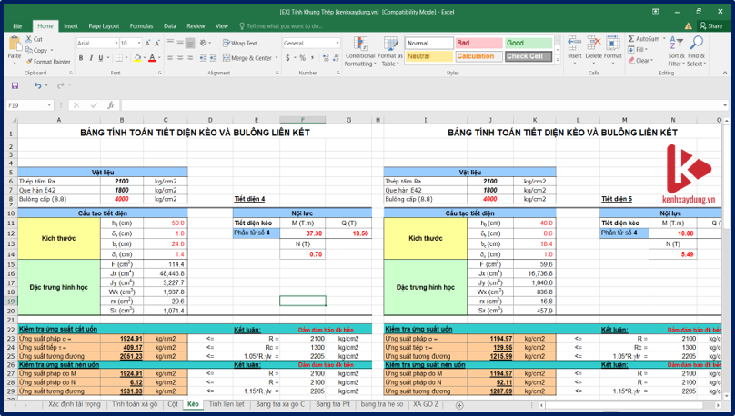 Bảng tính toán khung thép – bảng tính tiết diện kèo và bulong liên kết