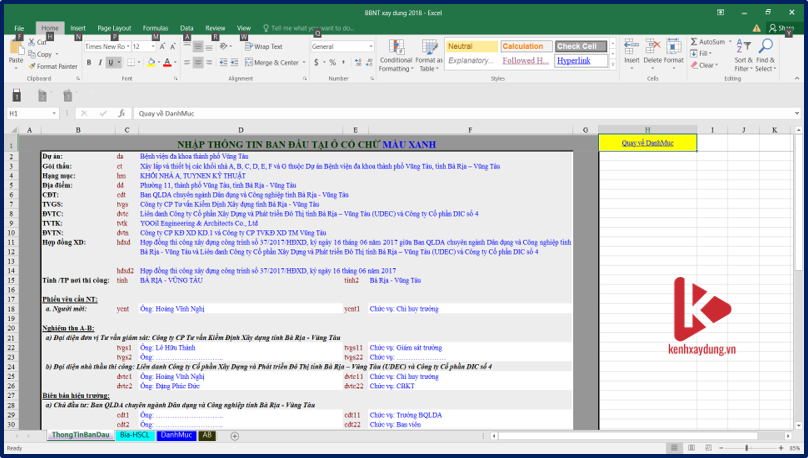 [Excel] Biên bản nghiệm thu xây dựng