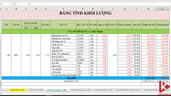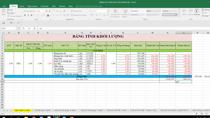 • Dự toán giá thành cửa nhôm ( File Excel )