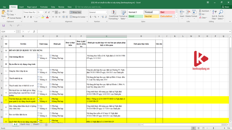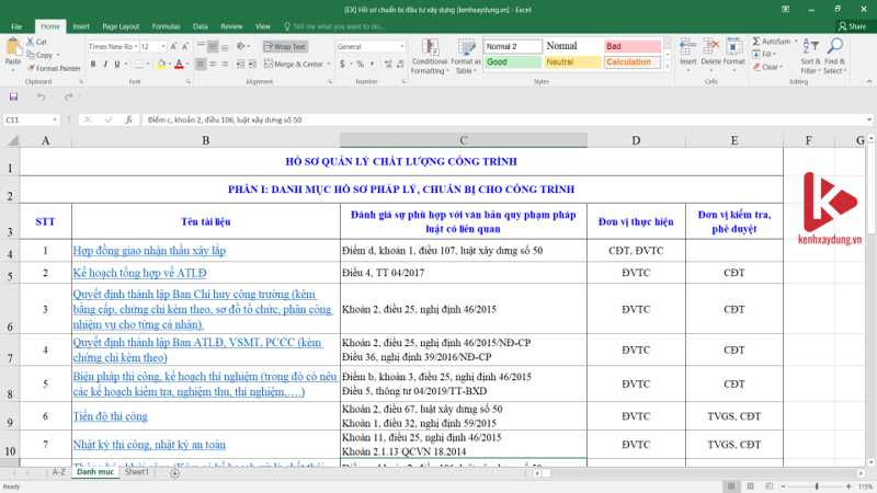 [Excel] Hồ sơ chuẩn bị xây dựng